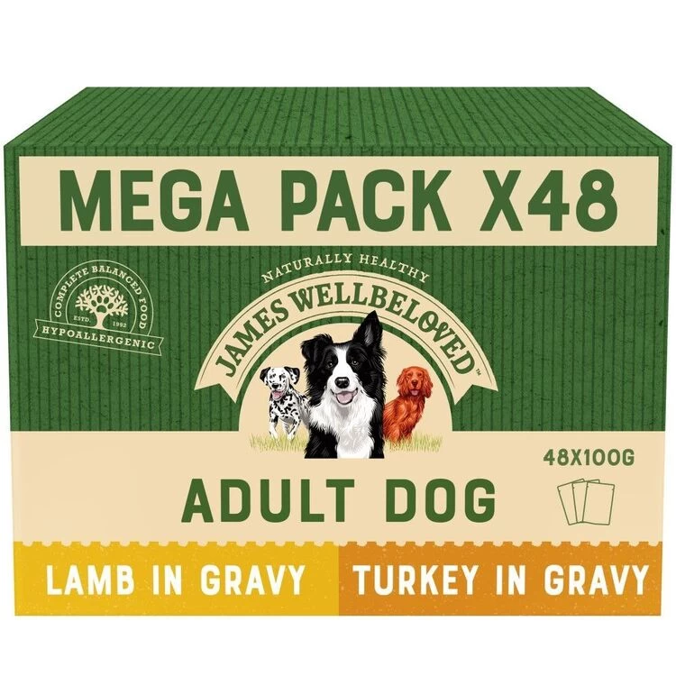 James Wellbeloved Grain Free Dog Food Pouch Turkey & Lamb in Gravy is wonderfully delicious and made with 100% natural meat. It is grain free and naturally hypoallergenic, meaning that it will be easier to digest and suitable for dogs who suffer from allergies.