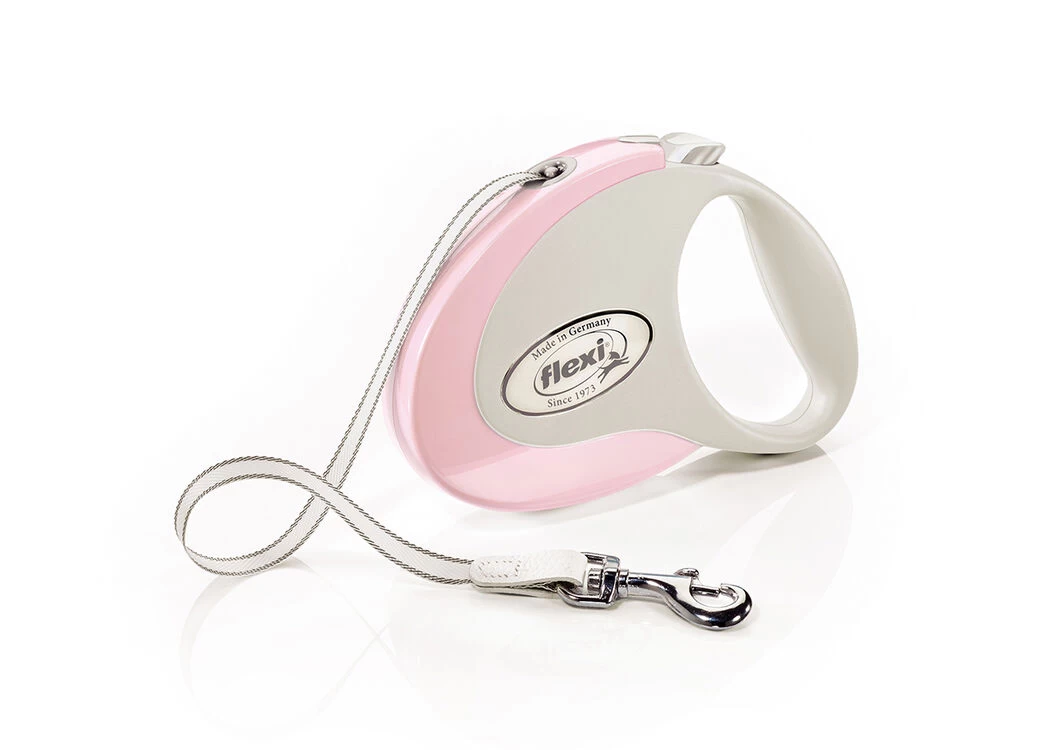 The flexi Style range stands out thanks to its elegant two-clour design. The retractable lead, with a high gloss finish and soft grip, is very lightweight and manageable, and is comfortable to hold. The elegant flexi style M 3m tape lead, in a two colour design is ideal for dogs up to 25kg.