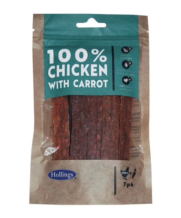These Hollings Chicken & Carrot Bars for Dogs are wonderfully delicious and healthy. The tasty treat is gluten and lactose free, which makes them easier to digest and less likely to cause allergies.