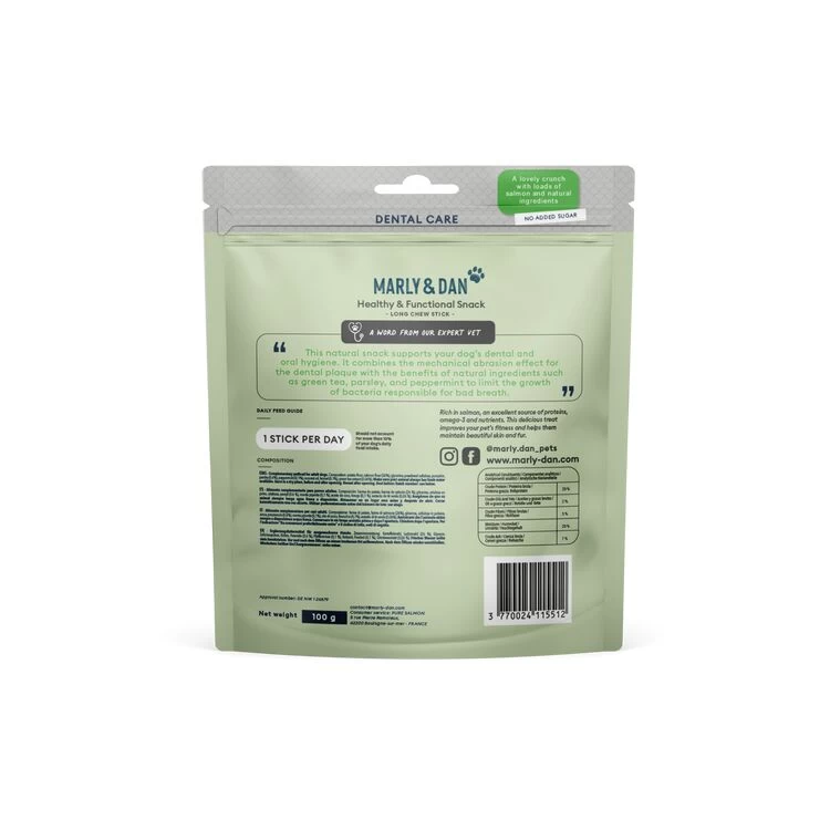This natural snack is the perfect complement to support your dog’s oral hygiene. These Dental Care chew sticks help to remove dental plaque through mechanical abrasion. Their natural ingredients help to reduce the development of bacteria-related bad breath.