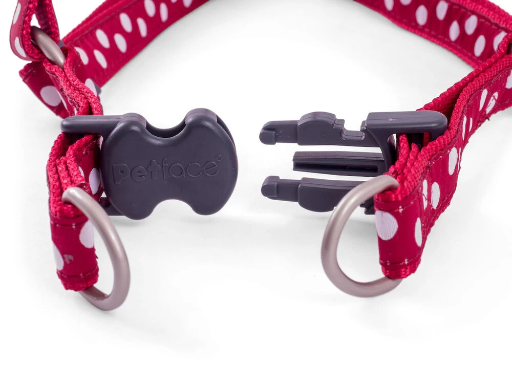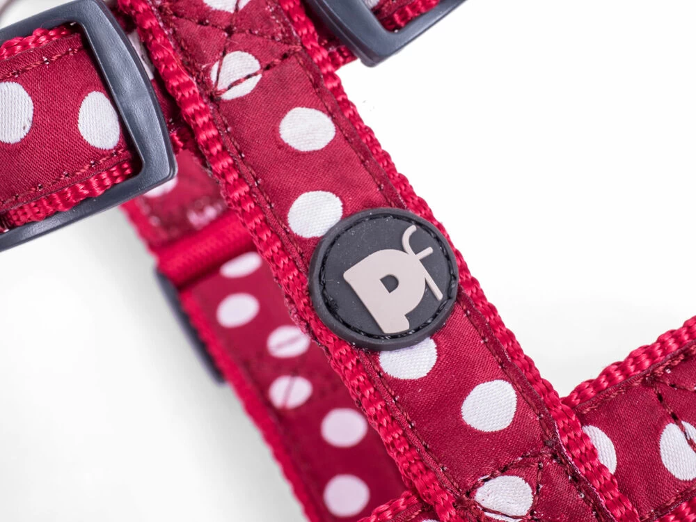 Petface cherry/white dog harness is made of high quality nylon material. Ideal for dogs prone to pulling and keeps your dog under control. The quick snap buckles make the harness easy to put on and remove. Provides maximum comfort for the dog. Perfect fit and comfortable to wear.
