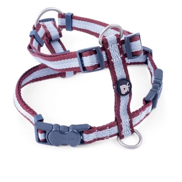 Petface Stripe dog harness with Ox Blood colour is built to last and won’t fail when you need them most. Functional and fashionable. available in nylon and faux leather and are designed with different characteristics of dog types in mind. As you’d expect we’ve used only the best quality materials. The clips are the strongest available to ensure the dogs’ safety and security, and give owners peace of mind.
