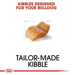 ROYAL CANINĀ® Bulldog Adult is enriched with Omega-3 fatty acids known as EPA and DHA. These nutrients help to support the good health of your Bulldogās bones and joints. Whatās more, this specially adapted formula also helps your dog maintain an ideal weight. The kibble in ROYAL CANINĀ® Bulldog Adult is tailor-made exclusively for the Bulldog breed. Because this breed has a turned up nose and an upper jaw thatās shorter than the lower one, the size and shape of the kibble has been specially adapted to make it easy for your dog to pick up. Additionally, its texture encourages thorough chewing to deter your Bulldog from swallowing it too hastily.