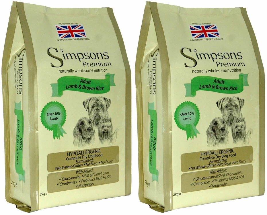 Simpsons Premium Adult Lamb & Brown Rice Dry Dog Food is perfect for dogs who have allergies to certain foods and for those who often suffer from digestion issues and irritable skin. It has been designed to be 100% hypoallergenic, in a wheat, gluten and dairy free recipe that also tastes great.