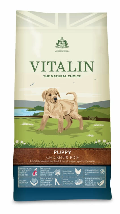 High in vitamins and minerals, Vitalin dry puppy food encourages growth in young dogs and does so using nothing but 100% natural, British ingredients. Moreover, the hypoallergenic recipe that is followed to create this puppy food ensures that even young dogs who suffer from sensitive digestion or have common allergies will not be have their condition exacerbated by it.