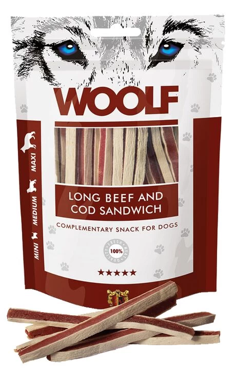 These Long Beef and Cod Sandwich Snacks are made of 100% protein sources to provide the highest quality and the best nutritional intake. The Woolf snack, once cooked, is packed without any chemical additives, preservatives or colourings. To ensure the conservation, an oxygen absorber is placed within the bag.